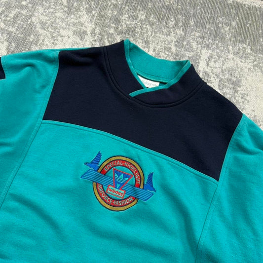 Vintage 90s Adidas RARE Centre Logo Sweatshirt Turquoise / Navy (L)
