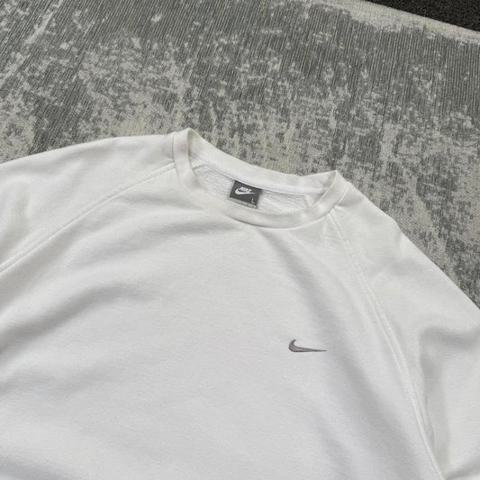 Vintage Y2K Nike Small Swoosh Logo Sweatshirt White (L)