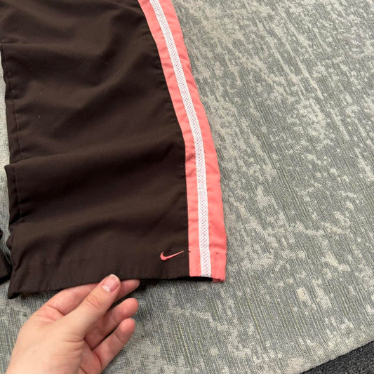 Vintage 00s Nike Baggy Tracksuit Bottoms Brown / Pink (Womens S)