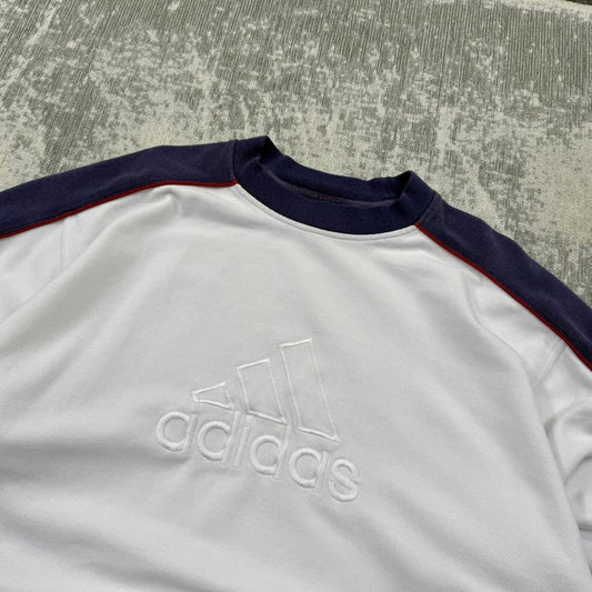 Vintage 90s Adidas Big Logo Sweatshirt White / Navy (L)
